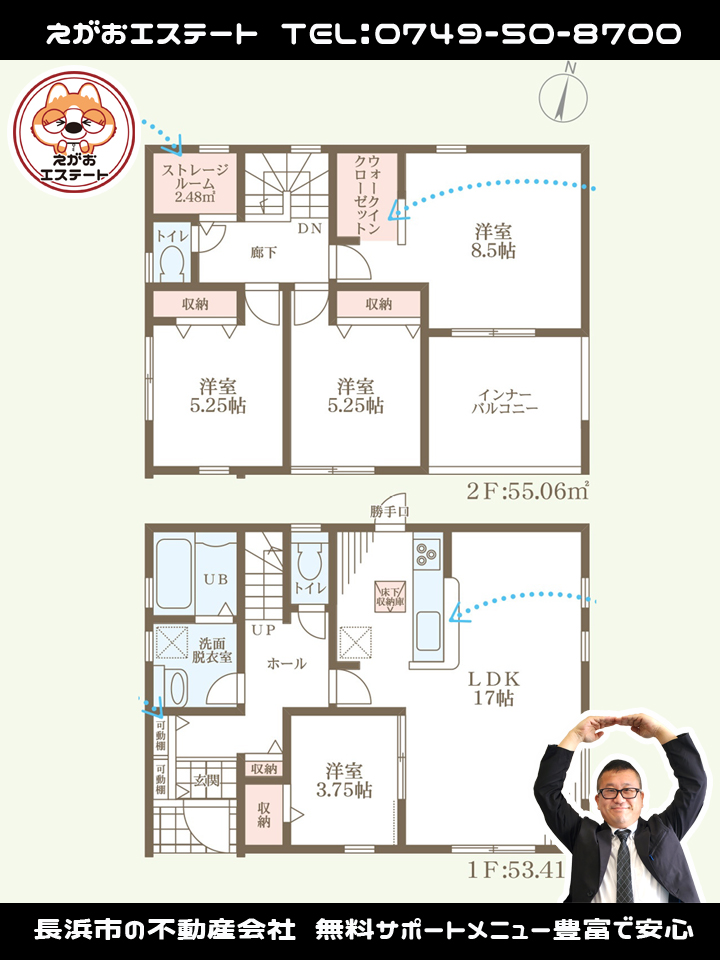 | 間取り | 4SLDK(洋3.75、洋5.25、洋5.25、洋8.5、LDK17.0) |