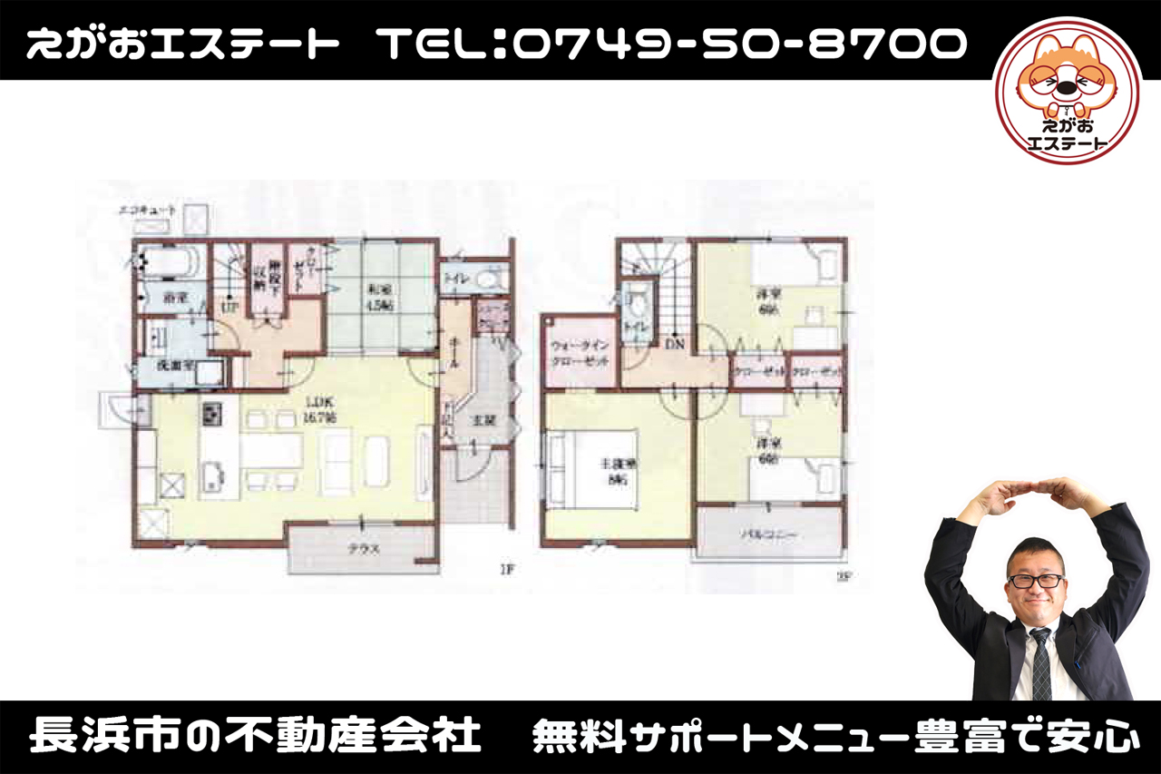 間取り4LDK(和4.5、洋6.0、洋6.0、洋8.0、LDK16.7)